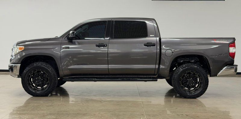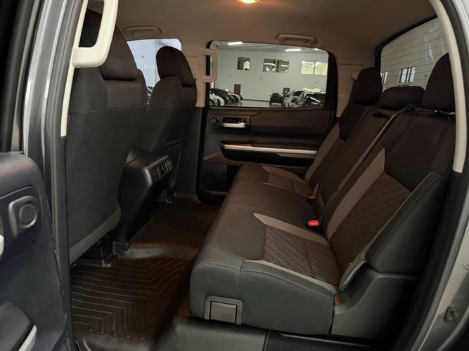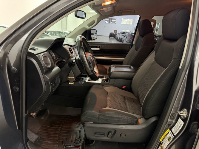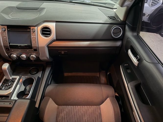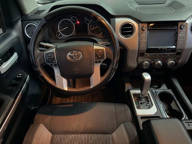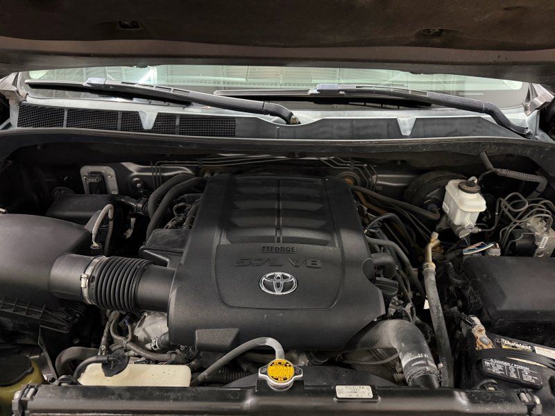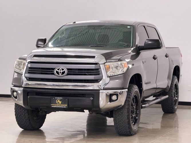 Unleash the power and reliability of the 2014 Toyota Tundra SR5, a bold statement in black that commands attention on every road. Under its hood lies the formidable I-FORCE 5.7L V8 engine, delivering an impressive 381 horsepower and 401 lb-ft of torque, ensuring you have all the muscle needed for any adventure or heavy-duty task. Paired with a smooth-shifting 6-speed automatic transmission, this Tundra offers both strength and refinement for your driving pleasure.